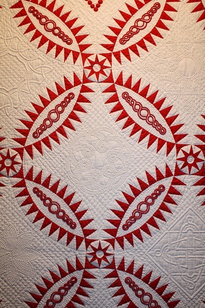 Schön bunt und fröhlich ist sie geworden, meine New York Beauty. Das schwarze Binding hebt die Farben noch extra hervor. Auch in diesem Quilt habe ich das Thema mehrfach aufgegriffen. Zum Einem sind da die Rundungen der Viertelkreise. Zum Zweiten habe ich die Farben reihum ausgetauscht. Zum Drititen habe ich Kreise gequiltet. In den mittleren Viertelkreisen durchgehend, aber in den Viertelkreisen mit den Spitzen habe ich die Spitzen ausgelassen.